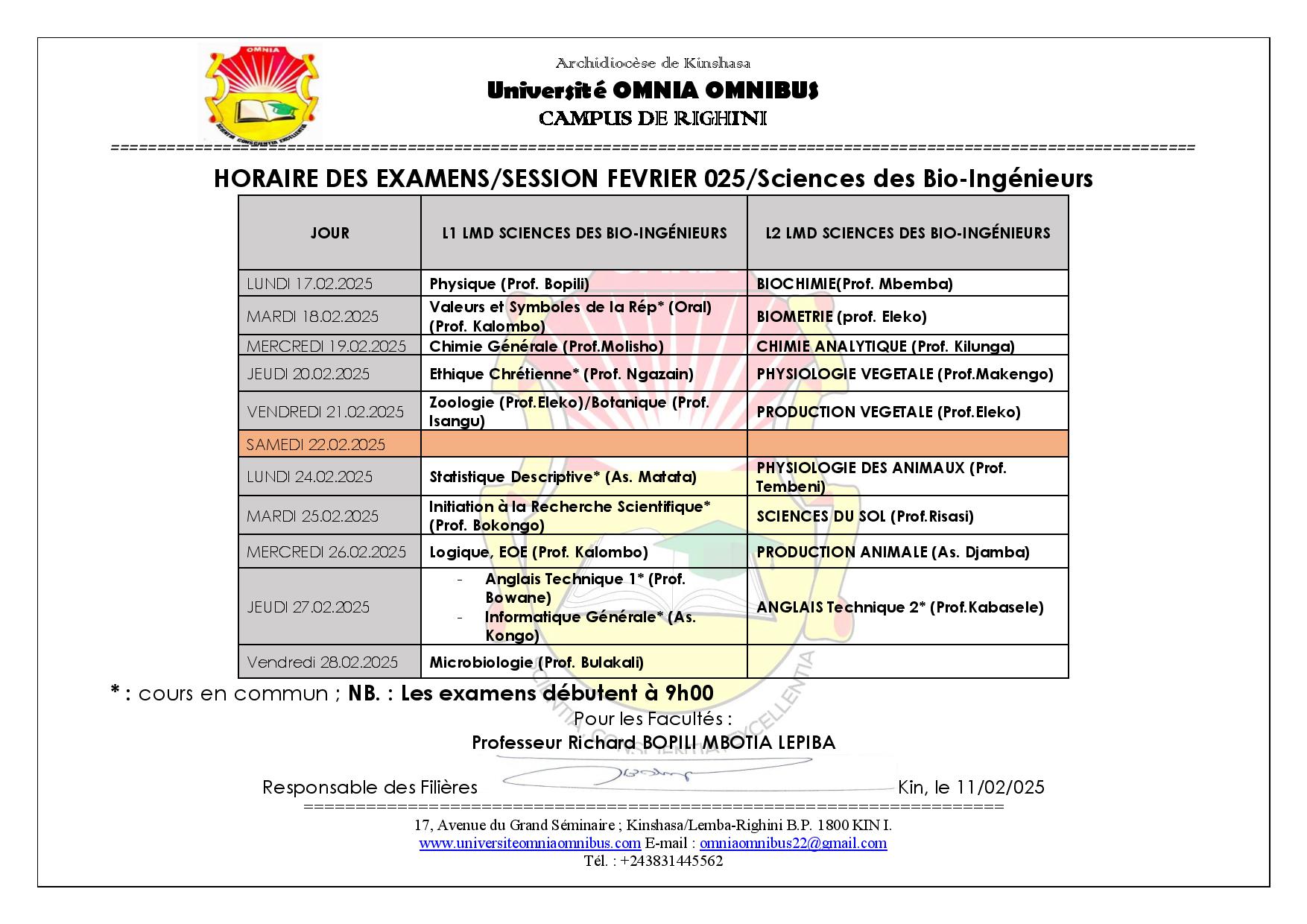 HORAIRE DES EXAMENS DU PREMIER SEMESTRE 2025